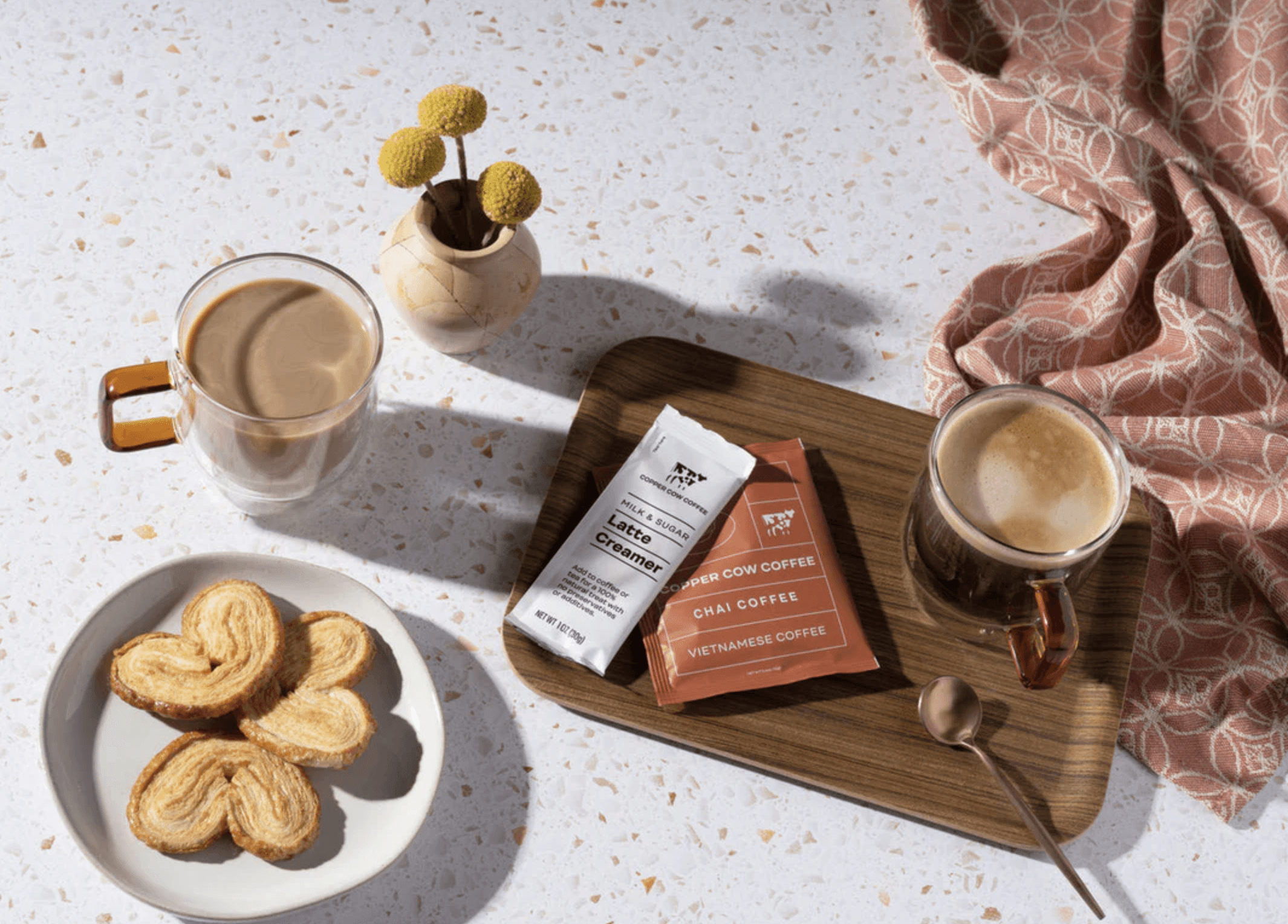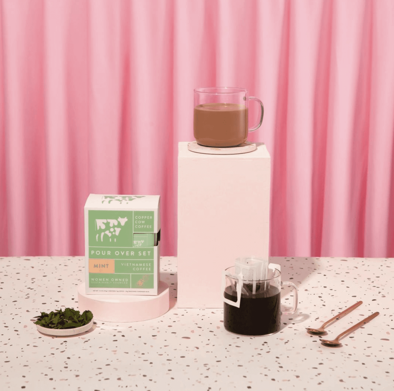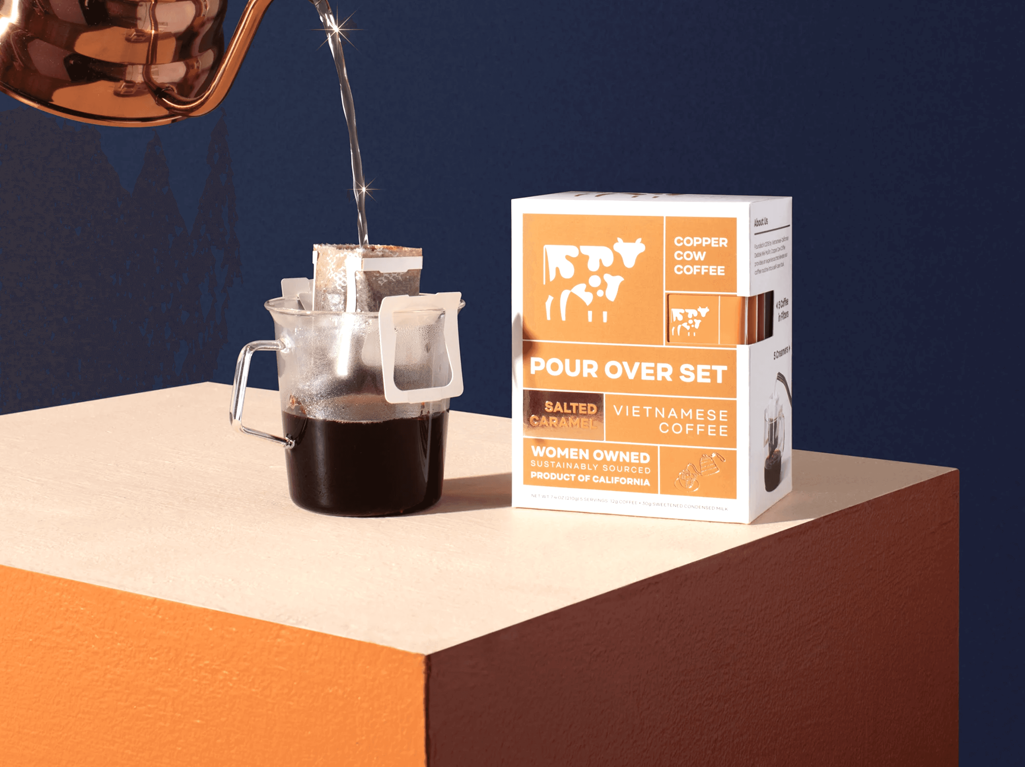 Copper Cow makes high-quality Vietnamese coffee and lattes accessible to everyone. They only use 100% natural ingredients for cafe quality lattes that anyone can brew at home. I developed the initial mark and design direction that carried them through their subsequent funding rounds and to the Shark Tank floor. They recently refreshed the design direction but the original mark remains.