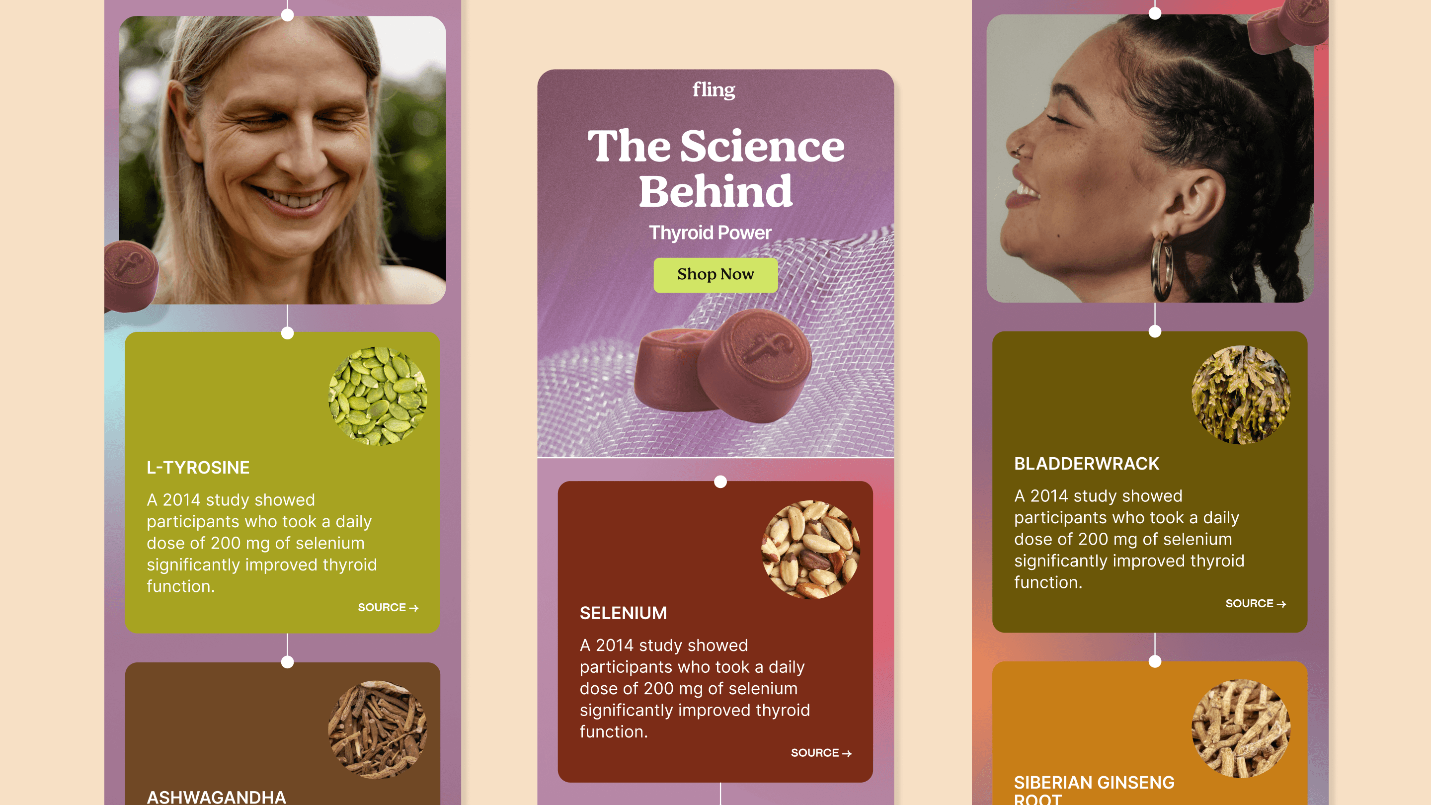 Fling is wellness company whether you're seeking calm, focus, or overall wellness, our delicious gummies deliver the support you need, helping you thrive amidst the pressures of modern life. Creative Direction: Ann Hanger Design: Sally Alvarado (Me)