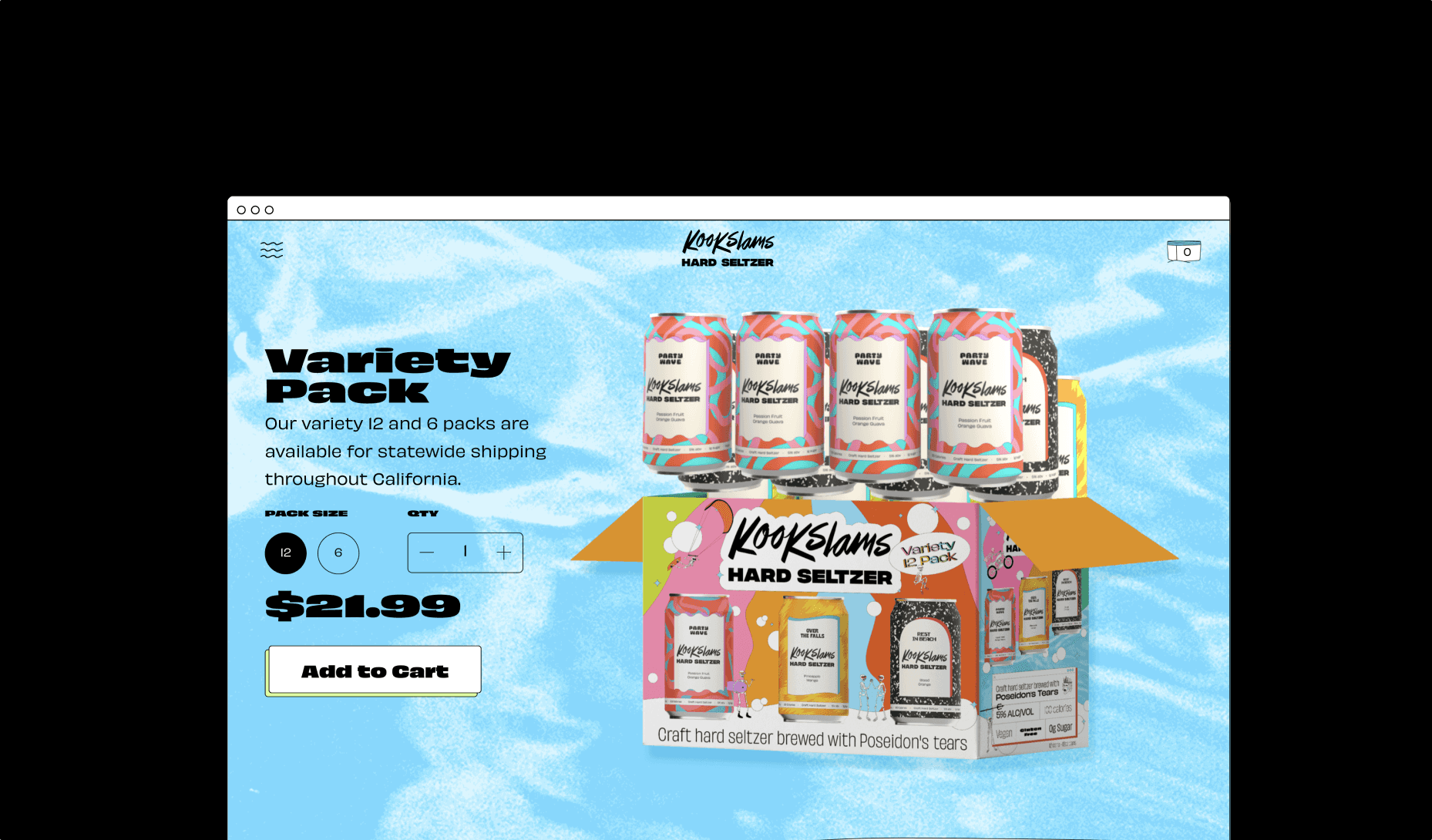 Kookslams started as a joke between friends, think Funniest Home Videos but for surfers. Over time, the page amassed a massive and fervent fan base. Seeking to satisfy their followers' thirst, Kookslams decided to launch their own seltzer brand and enlisted my help to create a brand look and feel that would make any Barney proud.